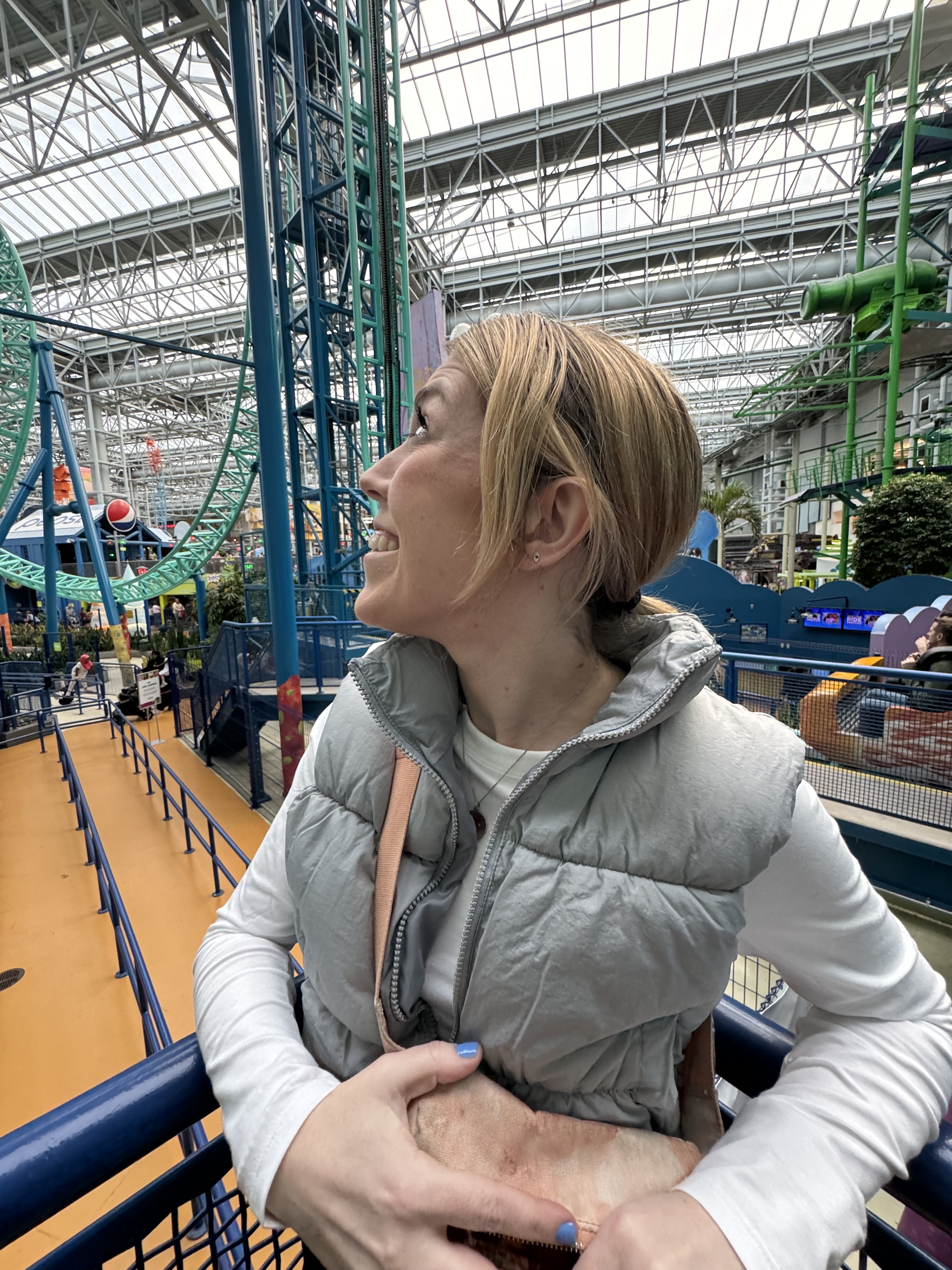 Waiting in line for the Spongebob roller coaster at the Mall of America.