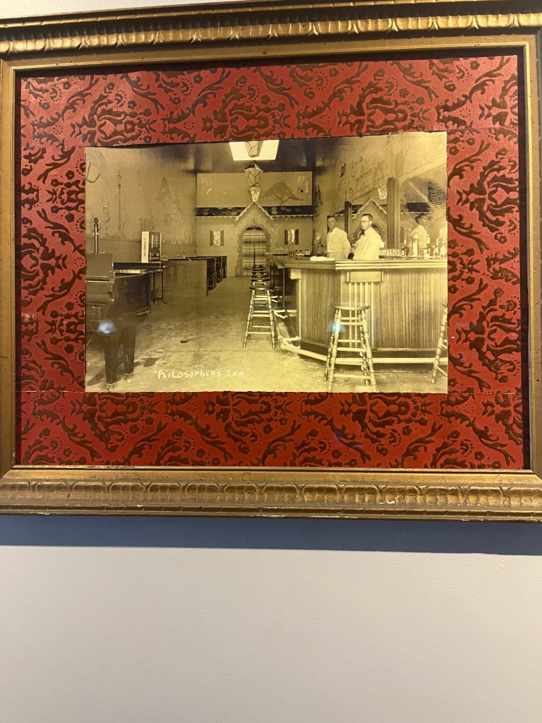 The Philosopher’s club got her name in the 1930’s when it opened after Prohibition. I didn’t catch the exact origin of the name, but I think it’s fair to assume it’s a dig at the teetotalers who just lost the battle for booze.
