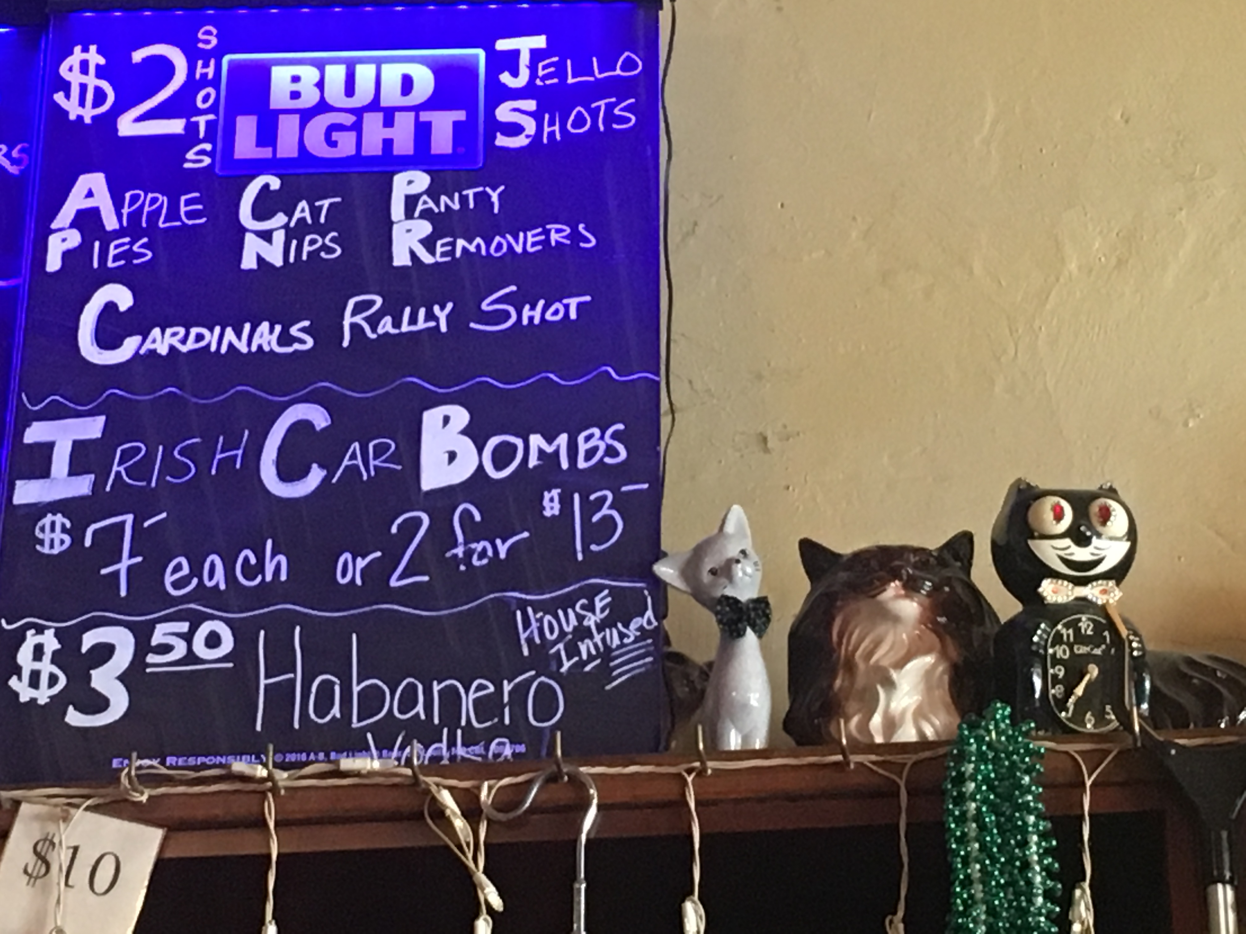 Sourcing bars near the brewery that were open that early was an easy task. This was a Budweiser town, through and through, and one that blew up in population during the days of corner taverns and daily barrel deliveries. We found one called The Cat’s Meow that was close by and been open since 7. Great spot to pre-game the brewery tour, right?