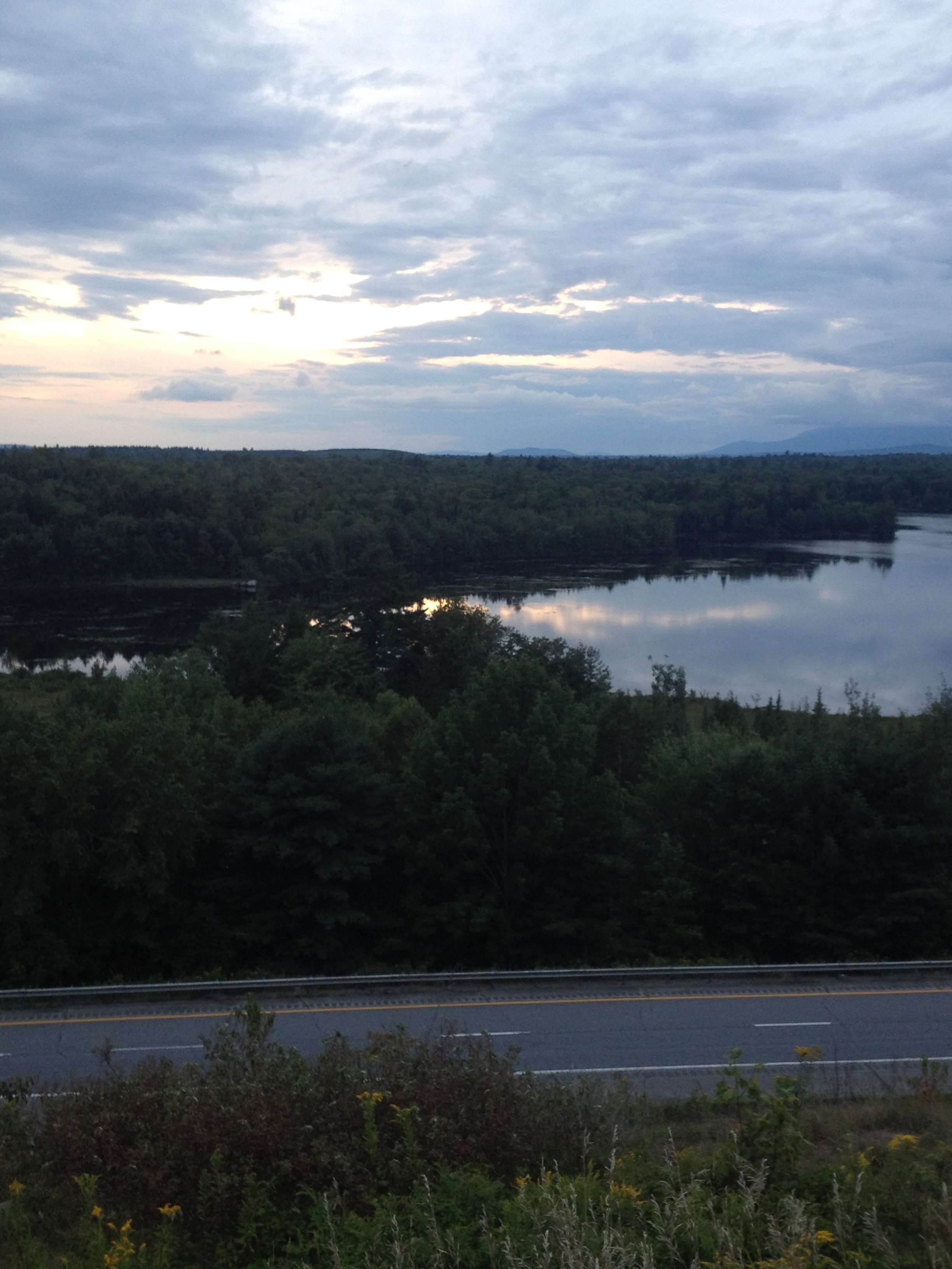 I left Portland around 3:30pm and made my ascent to the Northeast corner of the country. The unadvertised drive through Maine was as gorgeous as the brochures made it out to be. The constant dipping and diving through the pine tree lined grooves gave a sense of rugged rustic accomplishment. Halfway to Presque Isle I saw a roadside sign for “Mt. Katahdin Scenic Overlook.”